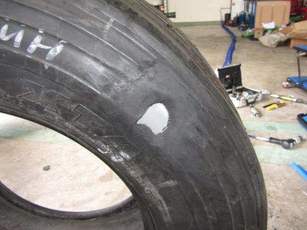 Сырая резина с кордом уходит в прошлое, так как сегодня на рынке представлены пластыри компании ТЕСН для ремонта любых колес. Вся нагрузка при ремонте шины приходится на пластырь, который клеится внутри шины. А уже для косметики снаружи применяется резина без корда и с малым содержанием серы. Представленными ниже фотографиями мы хотим показать надежность пластырей компании ТЕСН. Для наглядности мы сделали ремонт сельскохозяйственной радиальной покрышки без вулканизации сырой резиной, поставили на ремонтируемую область только радиальный пластырь СТ-82 и накачали колесо до рабочего давления 4 атмосферы. Все этапы данного ремонта смотрите на фото ниже. 1. Зачистили область повреждения на шине и поставили пластырь методом холодной вулканизации http://forum.tech-russia.ru/picture....&pictureid=246 2. Пропускаем запрессовку сырой резины в область повреждения в шине. http://forum.tech-russia.ru/picture....&pictureid=247 3. Монтируем шину на диск http://forum.tech-russia.ru/picture....&pictureid=248 4. Качаем колесо до рабочего давления 4 Атмосферы http://forum.tech-russia.ru/picture....&pictureid=249 Пластыри компании ТЕСН для ремонта шин, установленные под холодную вулканизацию, позволяют эксплуатировать колеса до полного износа протектора. |
