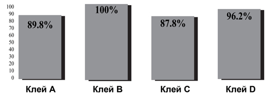 На последнем рисунке 5 результаты не столь однозначны. Адгезия при использовании заплаты и клея одного и того же бренда D немного хуже, чем при использовании клея бренда А и В с той же заплатой. Мы думаем, что в этом случае производитель сам не подобрал правильного химического активатора для своего клея, чтобы он должным образом реагировал с заплатой их же бренда.