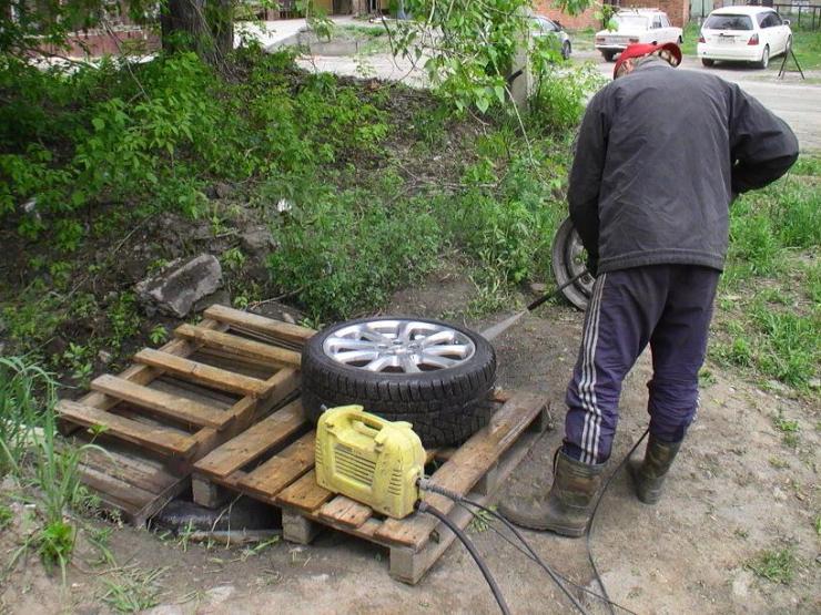 Особо "порадовала" фотка с мойкой колес на улице керхером.